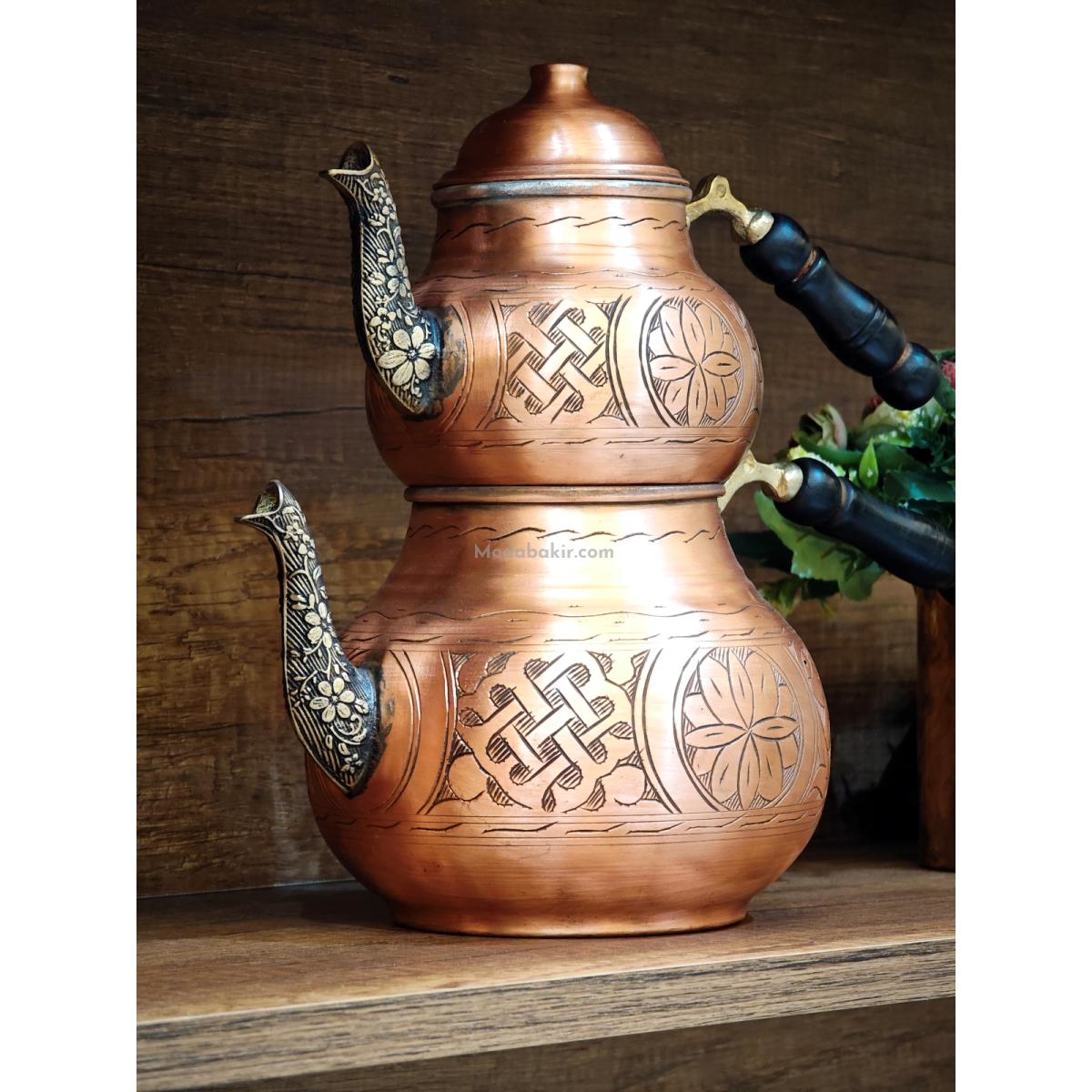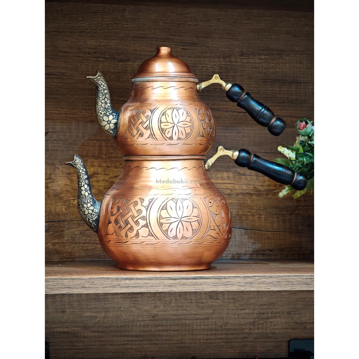 • Bakır çaydanlık modelleri arasında öne çıkan el yapımı,bakır işlemeli çaydanlık  tasarımlarımız, hem estetik hem de işlevselliğiyle mutfağınıza şıklık katıyor. Geleneksel yöntemlerle üretilen bakır çaydanlık takımı, ısıyı eşit dağıtarak çayın aromasını tam kıvamında verir. Bakır çaydanlık sağlıklı mı ya da bakır demlik sağlıklı mı diye merak ediyorsanız, iç kısmı kalaylı modellerimiz sağlıklı kullanım için idealdir.