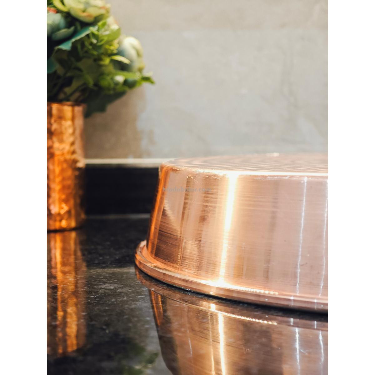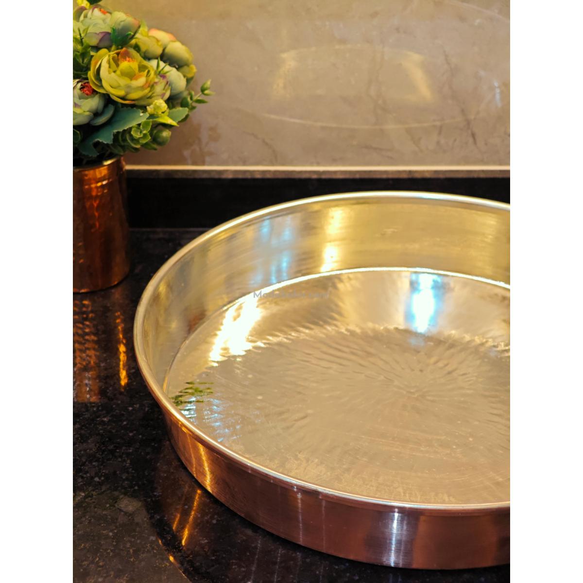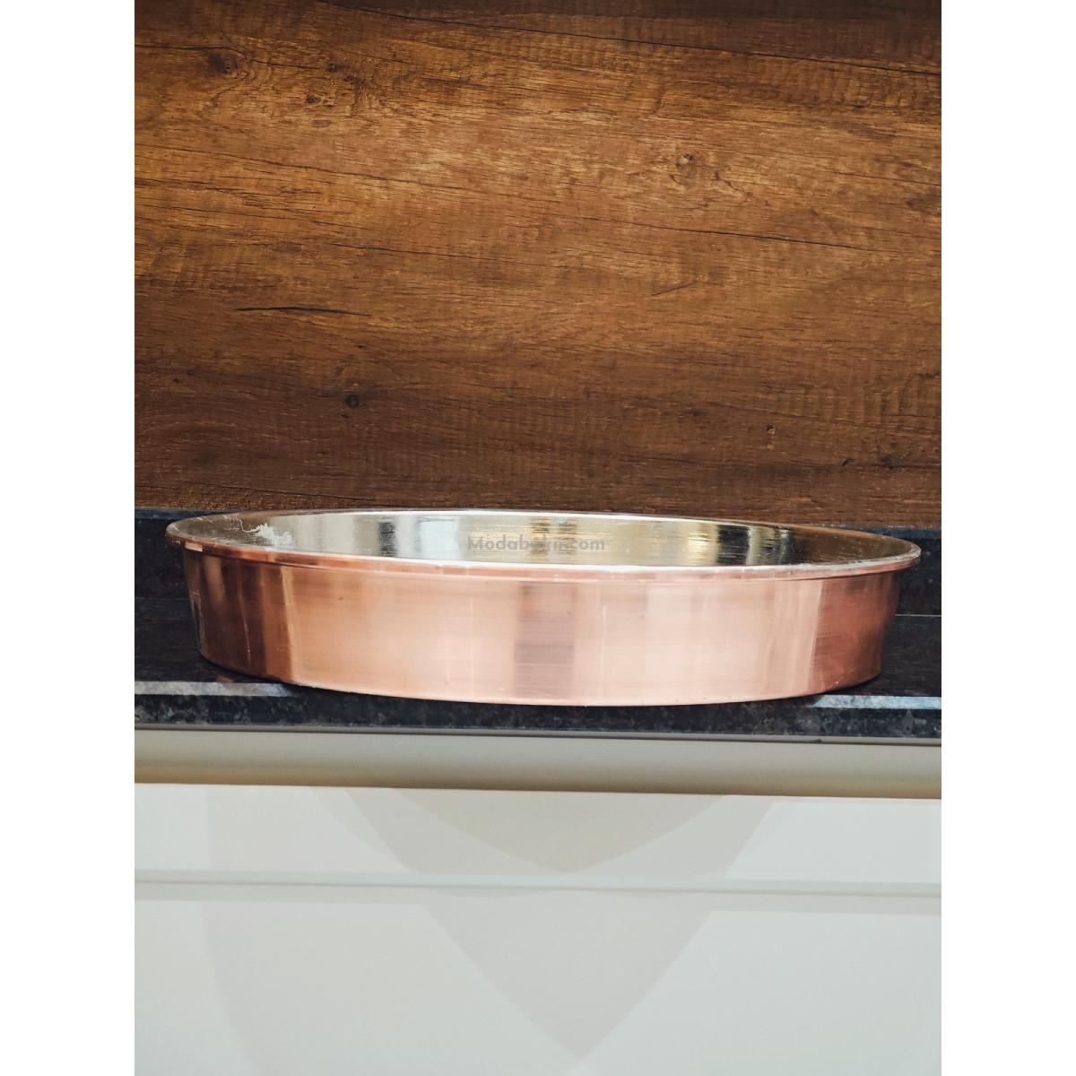 Hijyenik Özellikler: Bakırın doğal antibakteriyel özellikleri, tepsinin hijyenik kalmasına yardımcı olur ve bakterilerin üremesini önler.