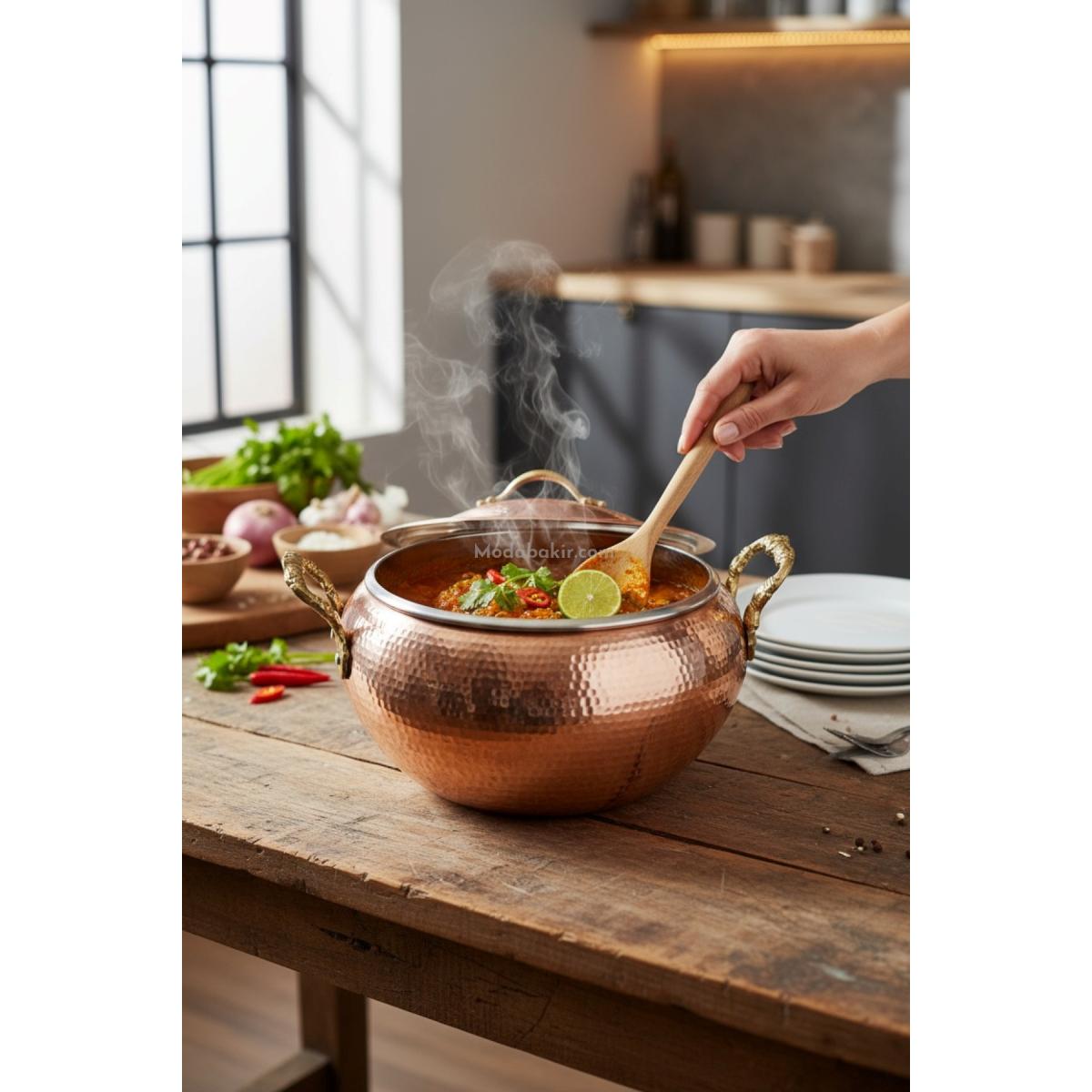 - Her bir bakır güveç tenceresi, ustalarımız tarafından elde şekillendirilir ve kalın bakır malzemeden üretilir. Dayanıklı gövdesi uzun yıllar sorunsuz kullanım sağlar. İç yüzeyde kullanılan kalay kaplama, gıdayla teması güvenli hale getirir ve doğal pişirme deneyimi sunar.