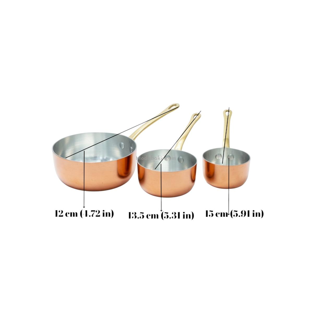 3’lü Bakır Ölçü Kabı Seti (12 cm, 13.5 cm, 15 cm)